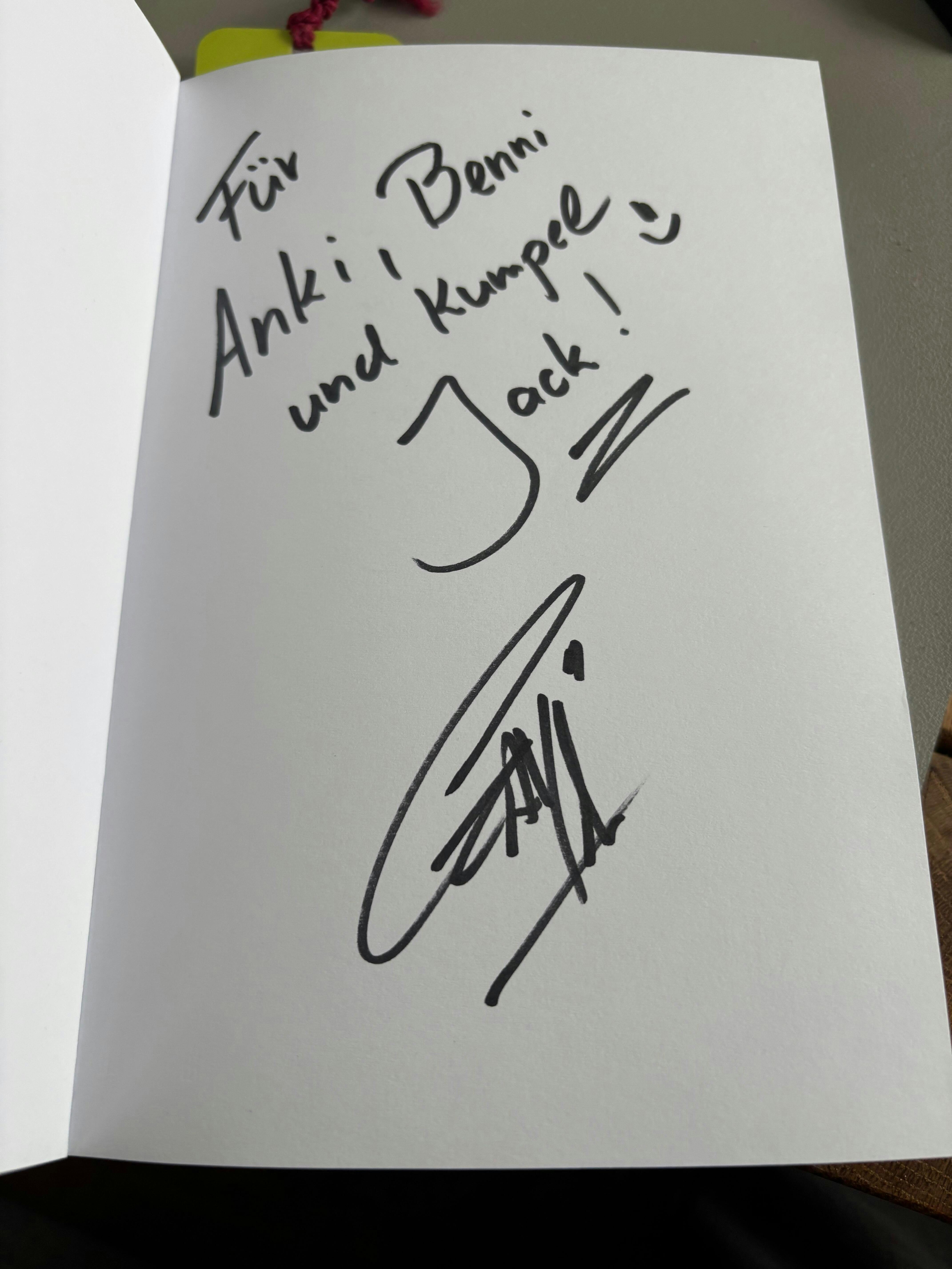 Ja, jedes Exemplar wird handsigniert – auf Wunsch mit kleiner Widmung.